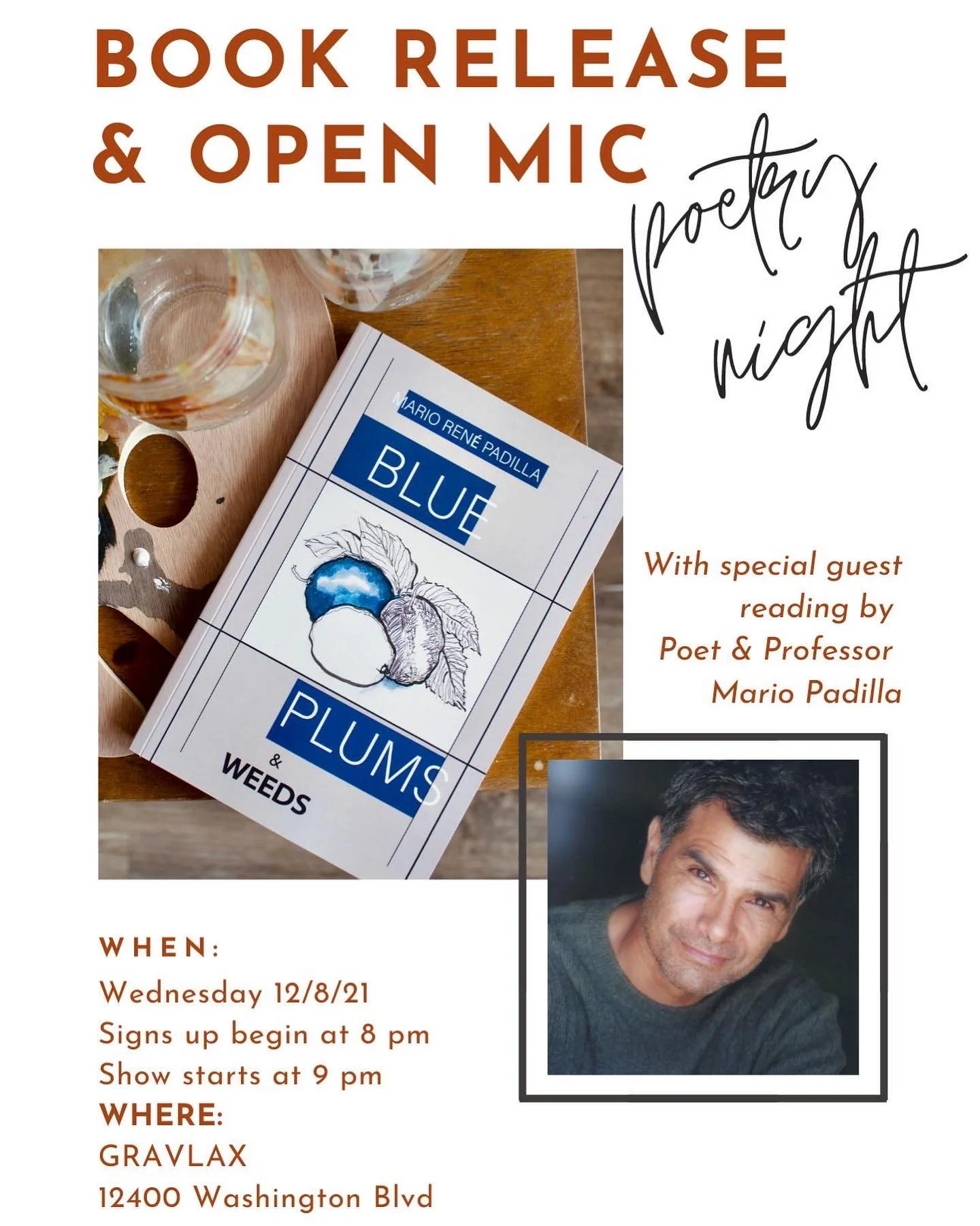 OPEN MIC NIGHT Tuesday, December 7, 2021 1:00 PM 2:00 PM 13:00 14:00 Google Calendar ICS Join us on Wednesday, Dec 8th at 9PM for another Open Mic Poetry Night at Gravlax in Culver City! Get there by 8PM to sign up on the list! Poets, musicians, actors, artists! Follow @pspoets on IG for more details!